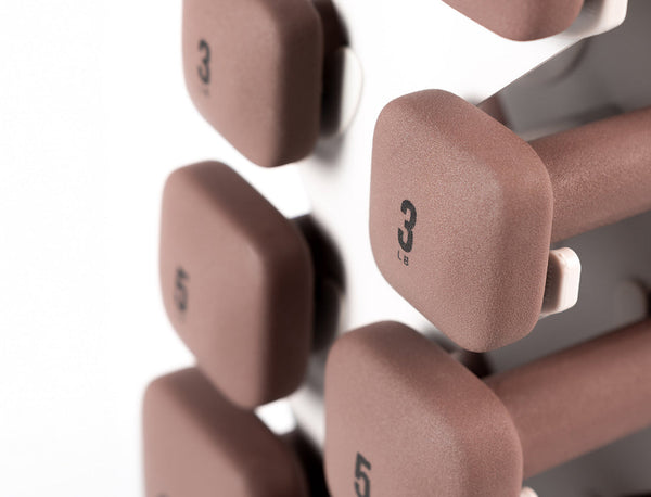 Anti-slip, floor-safe dumbbells with soft, grippy handles and a modern color collection.